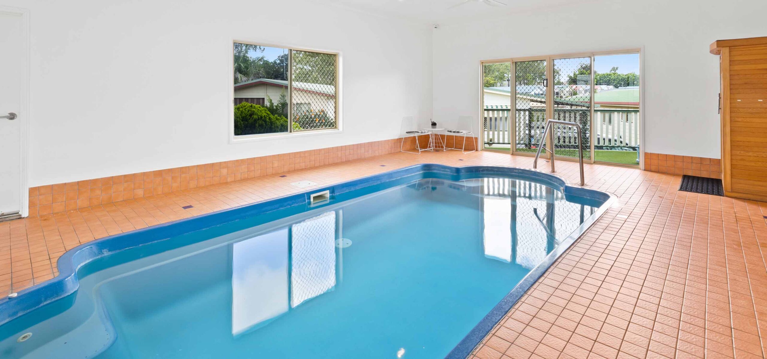 Start your morning with a quick dip in the pool before meeting up with neighbours for a hit of tennis or round of lawn bowls.